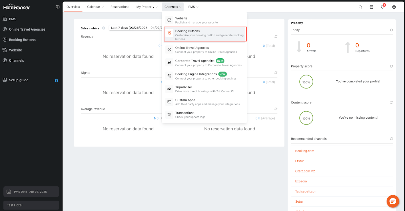 This document explains the basic steps users must follow to activate the reservation system on the platform. The main purpose of the guide is to describe the process of adding a new reservation module to the system in the shortest way possible by showing the relevant menu paths (Channels > Booking Engine).