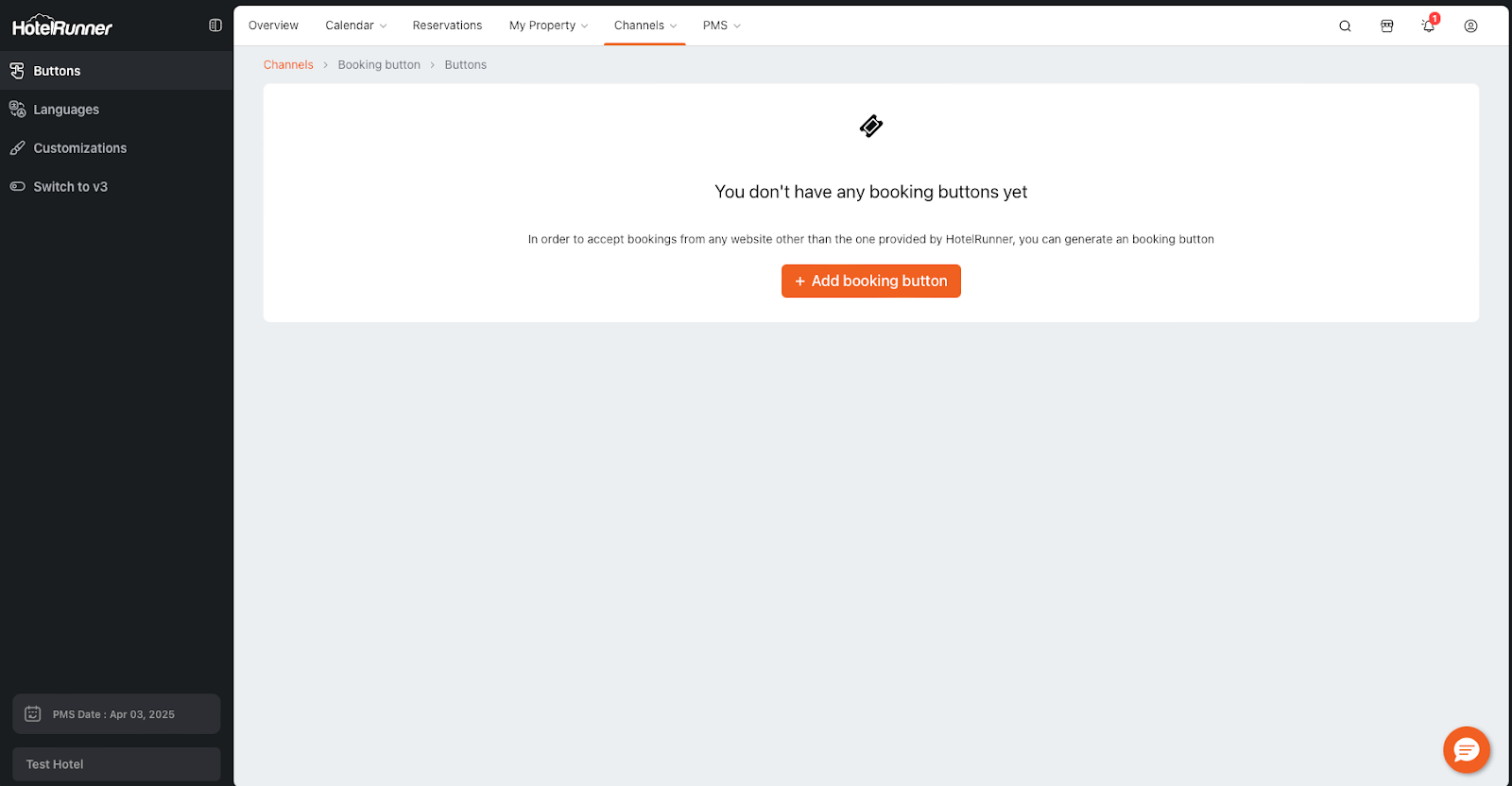 - Standart Button: Used to add a Book Now button to your website. The Standard Button is a simple button used to provide quick access to the Booking Engine from the website. Users are directed to the main page of the Booking Engine without the need for a search box or other special tools. Additionally, the button’s position can be customized with options to place it in different areas of the webpage (e.g., top left or top right corner).