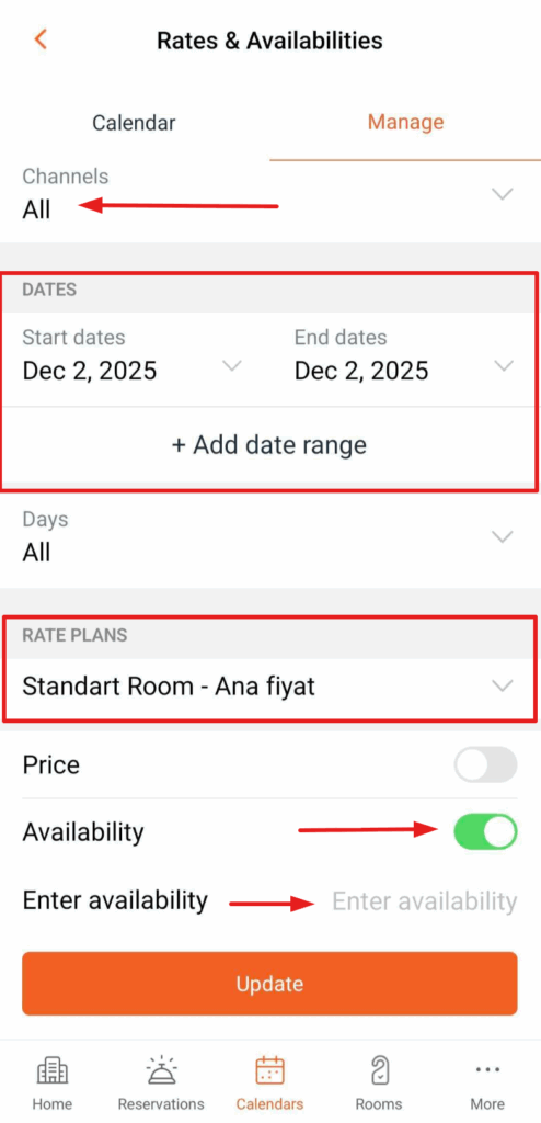 🔔 Not: Once your update is complete, the changes you made for the selected channels are added to the processing queue. This means that the HotelRunner system sends the data to all Online Travel Agencies (OTAs). It may take some time for the updates to be fully reflected on the OTAs.