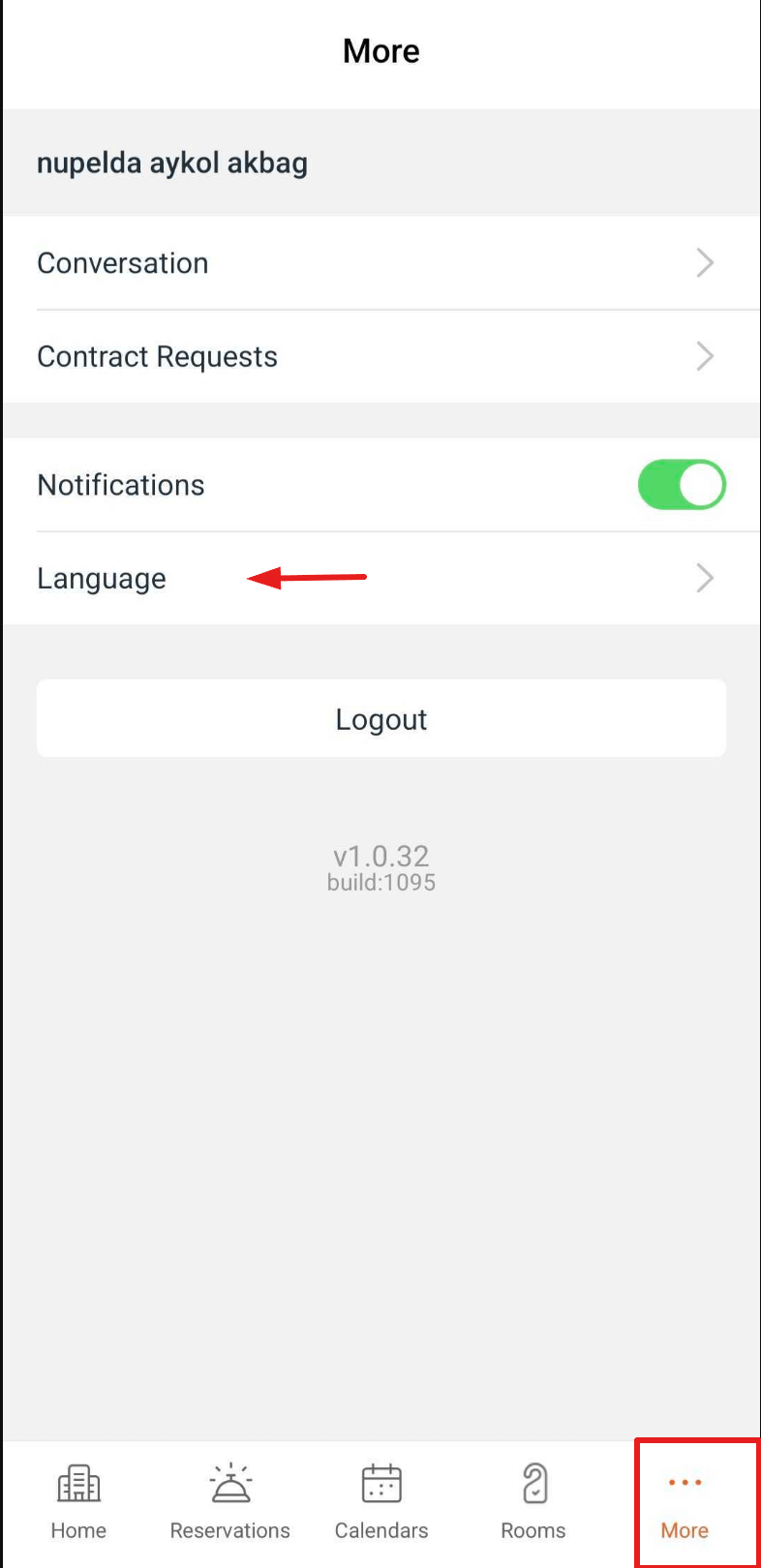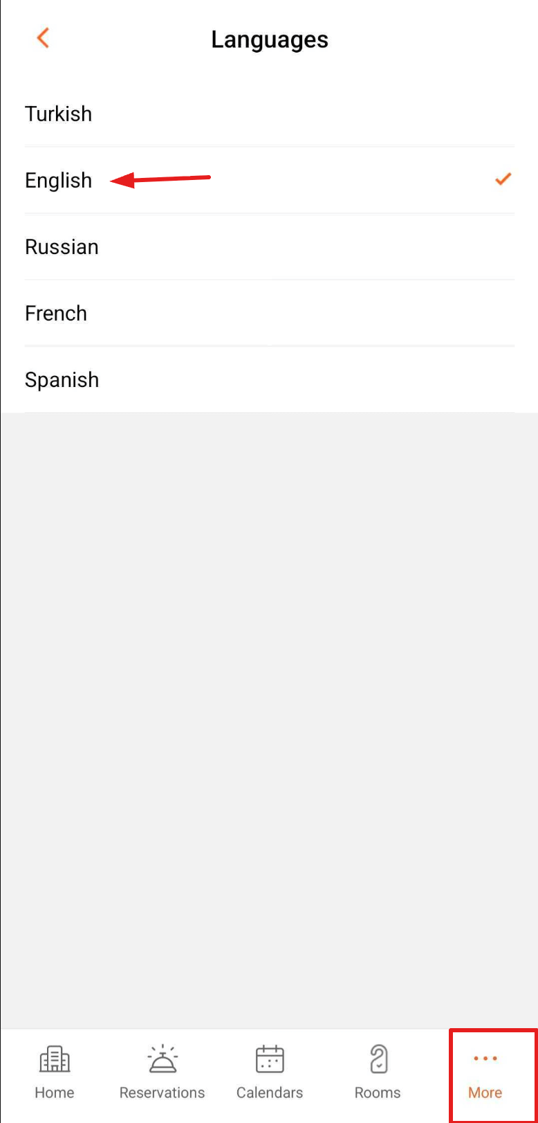 You can change the language of your application in the “More” section of your Hotelrunner application.