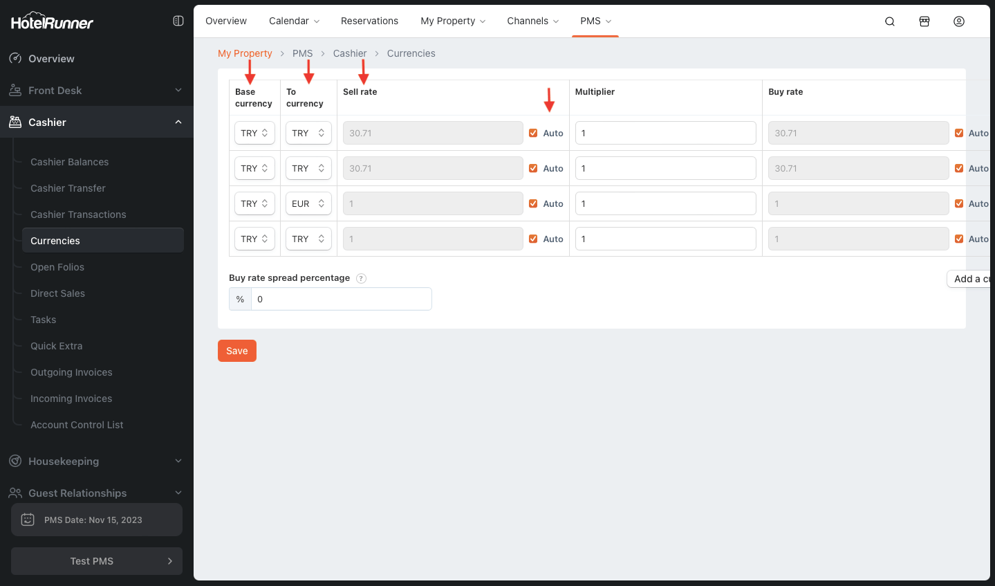 - Multiplier: You can transfer exchange rate transactions to the PMS module by applying a certain multiplier through the value in this field.
