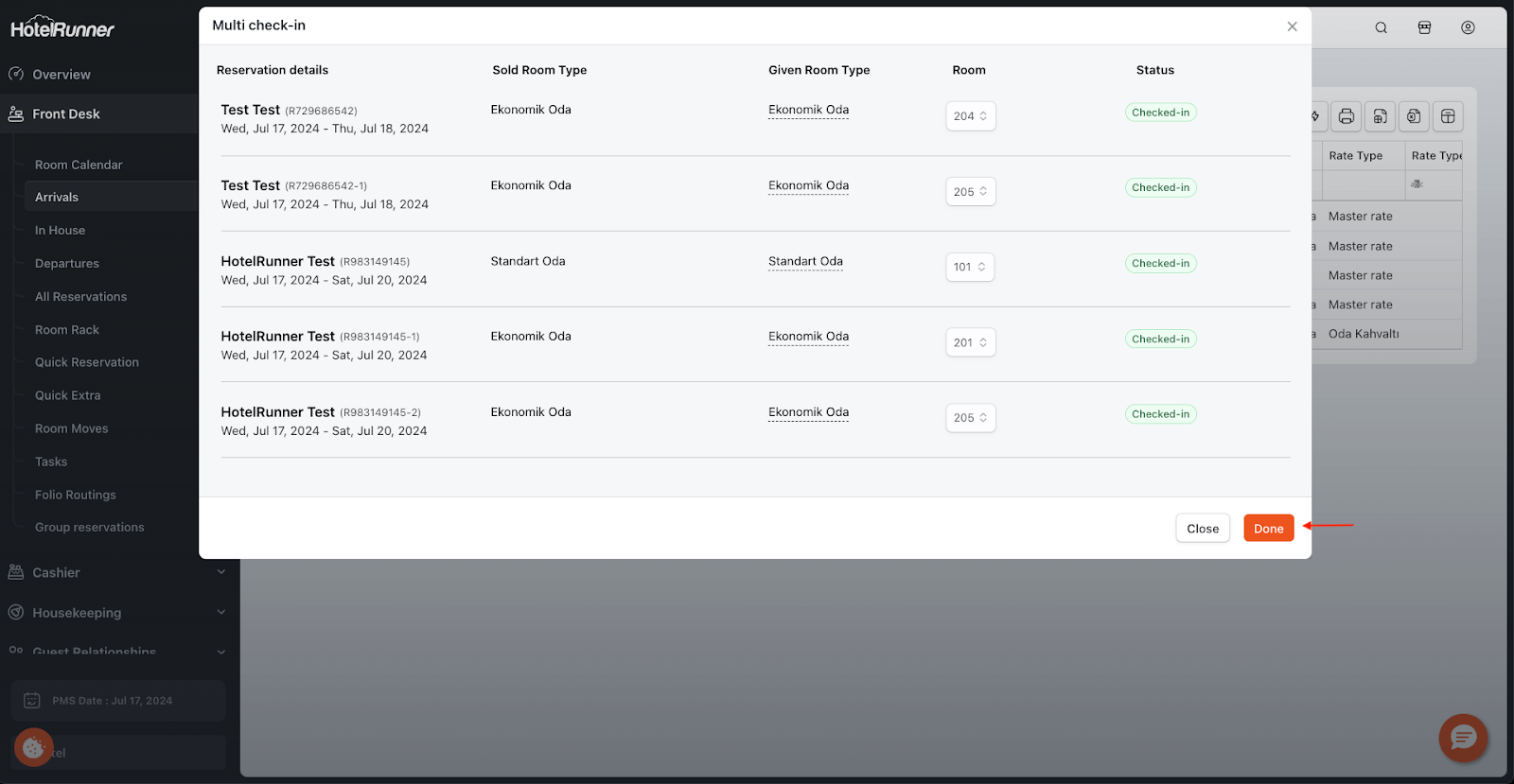 The Bulk Actions feature within HotelRunner PMS enables the efficient execution of multiple tasks simultaneously, enhancing operational efficiency and saving time. This functionality is designed to assist users in quickly and effectively completing specific processes
