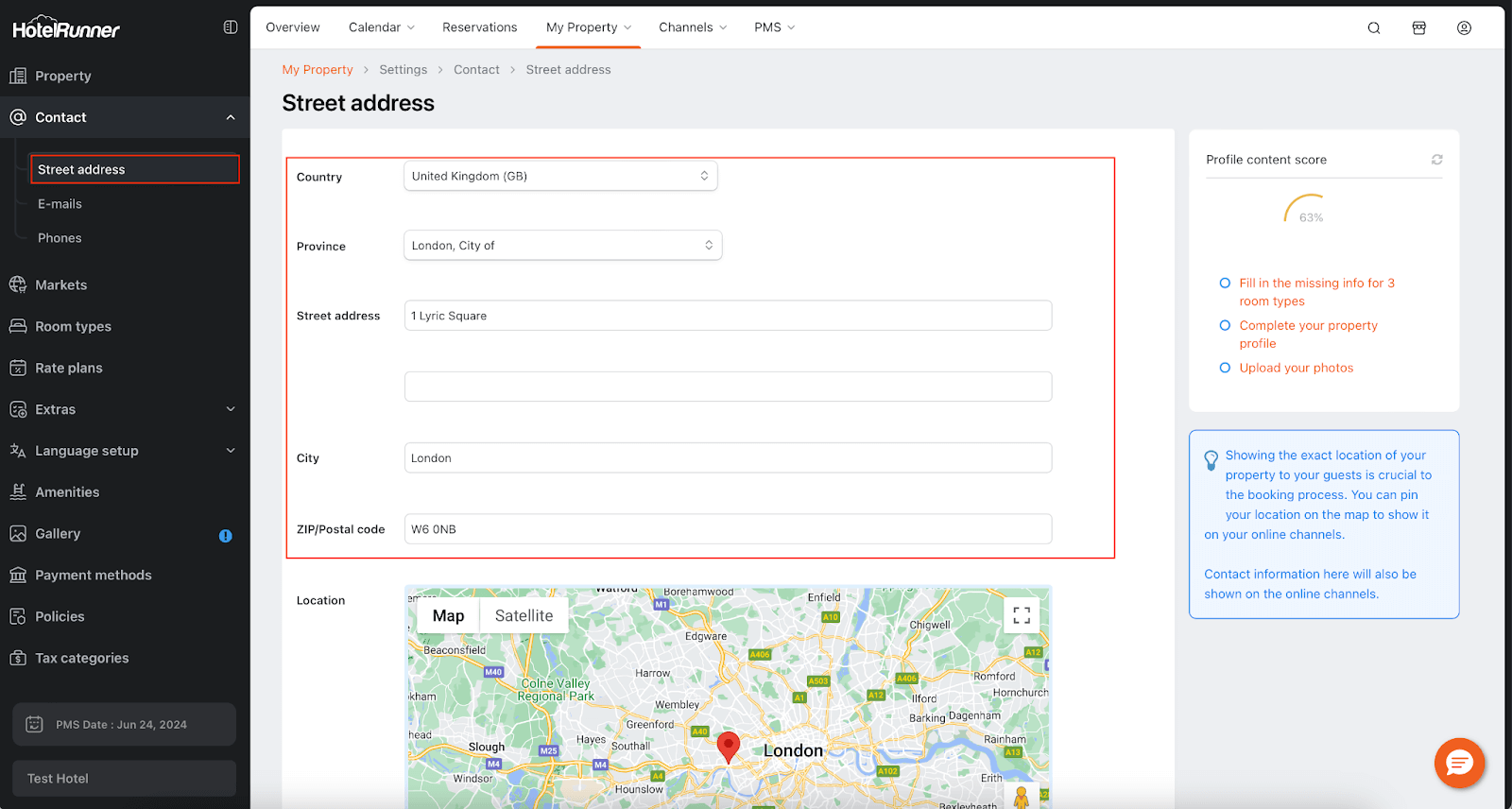 - Next, update the address details of your property in the Street address field (and associated fields like city, country, etc., if applicable).