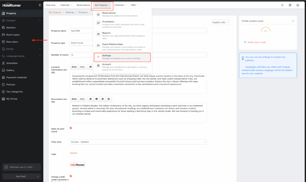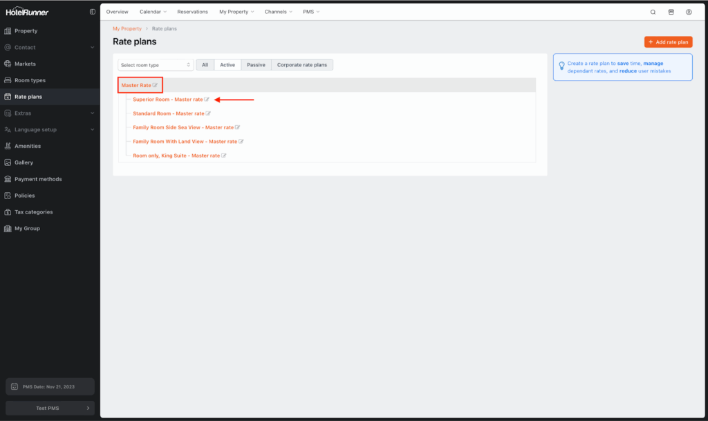 - Navigation: You can view this field by navigating to Property > Settings > Rate Plans and selecting the relevant room types under the price type categories.
