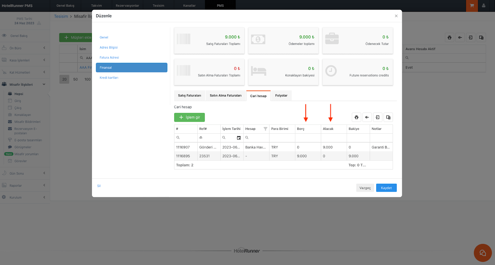 Misafir Hesabına Cari Ödeme Ekleme