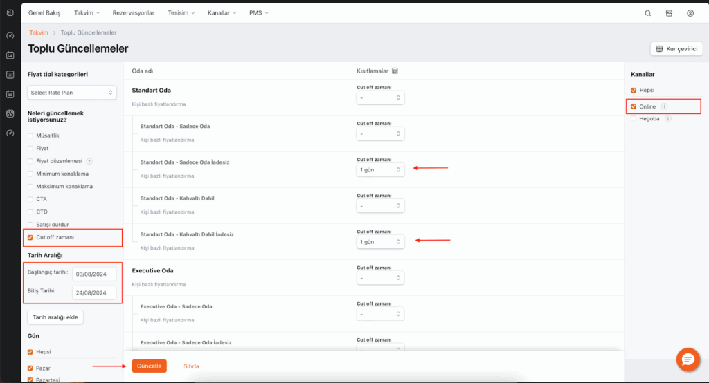 🔔 Not: Cut Off Zamanı yalnızca HotelRunner Rezervasyon Modülü’nde kullanılabilir,  bağlı olduğunuz online seyahat acenteleri tarafından kullanılmamaktadır.