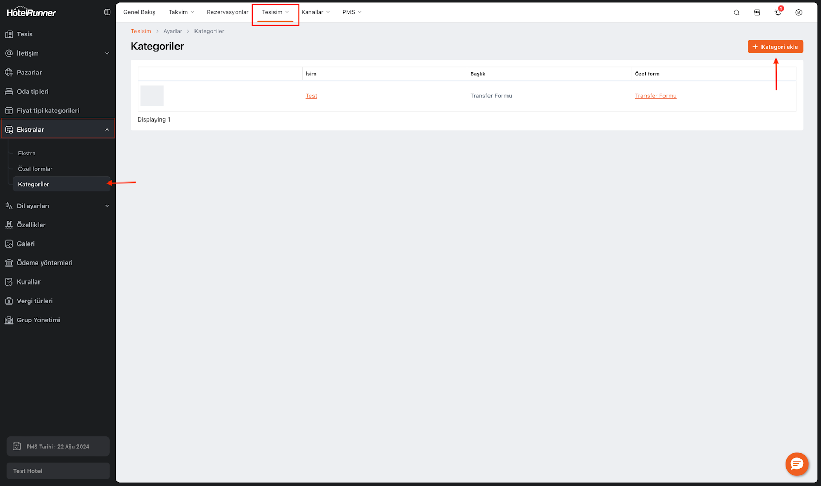 Kategori ekleme işlemi, ekstralarınızı iki temel amaçla yönetmenizi sağlar: organizasyon ve sunum. Kategoriler, ekstraların Rezervasyon Modülü’nde misafirlere daha düzenli bir şekilde sunulmasını sağlarken, eklenen görsellerle de ürün ve hizmetlerinizi daha çekici hale getirir.