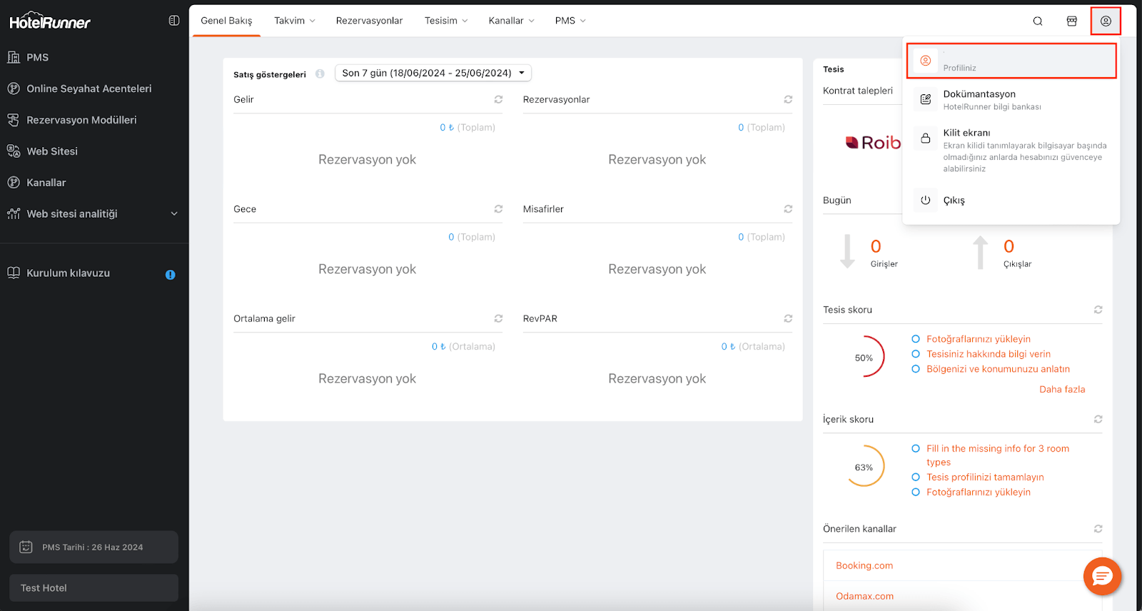 HotelRunner panelinde mevcut olan kullanıcı dilleri İngilizce, Türkçe, Fransızca, Rusça ve İspanyolca dilleridir. Panel içine kullanılan dili değiştirmek için aşağıdaki adımları izleyebilirisiniz