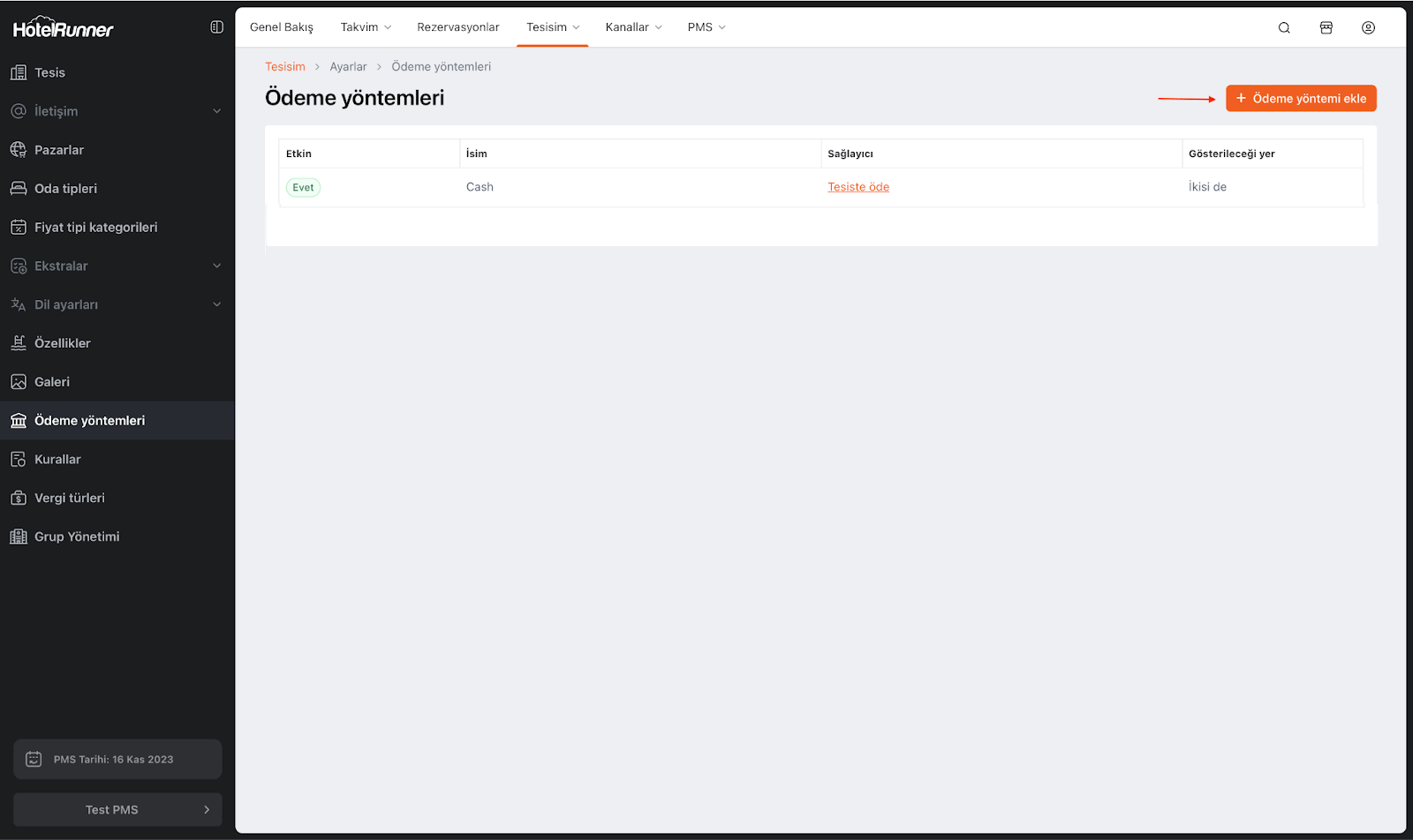 - Burada oluşturulan ödeme tipleri yalnızca HotelRunner Kanal Yöneticisi için kullanılmaktadır. Bu ödeme tipleri, bağlı olunan satış kanallarına yansıtılmamaktadır.