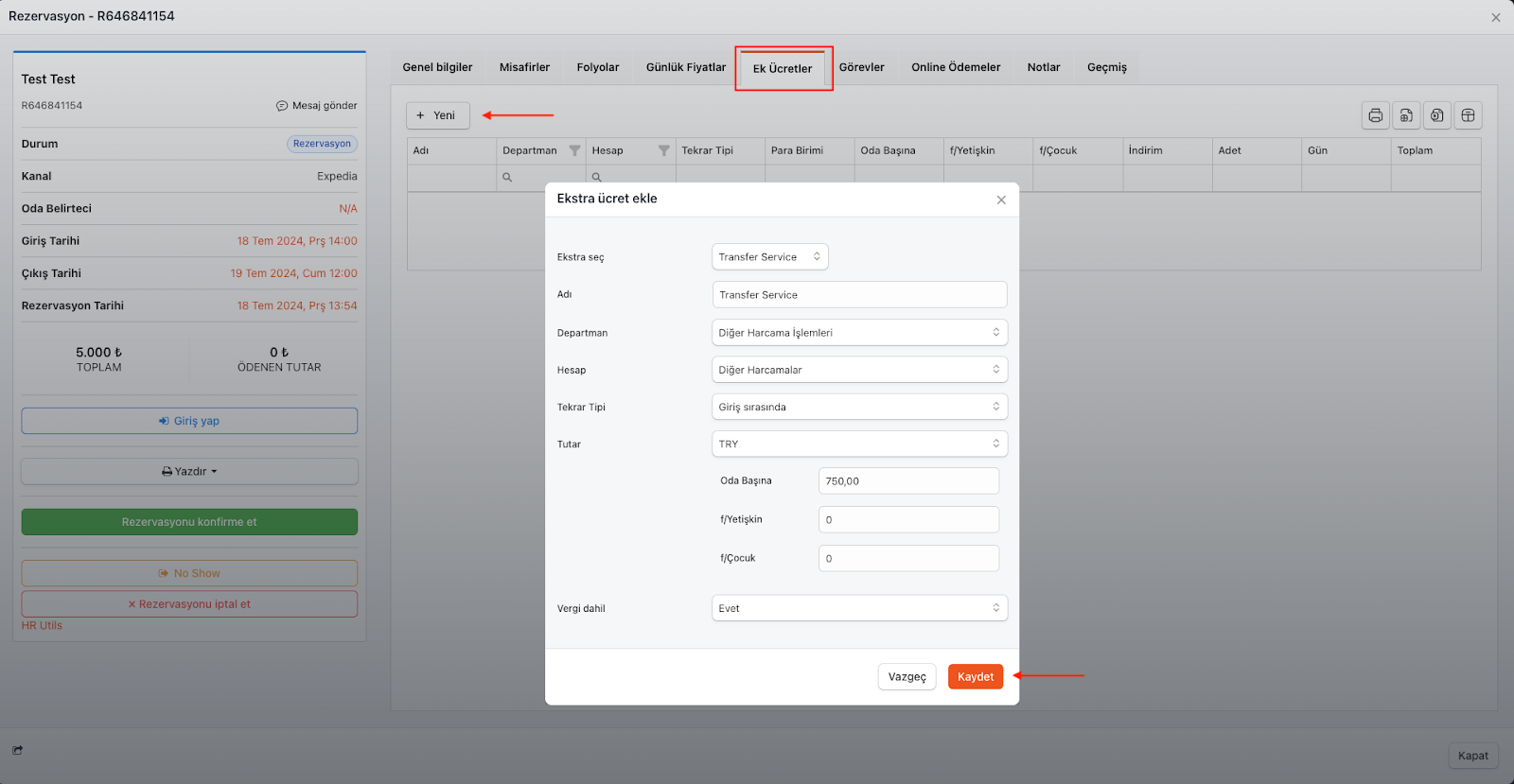 Rezervasyon ekranı ek ücretler sekmesi nasıl yönetilir