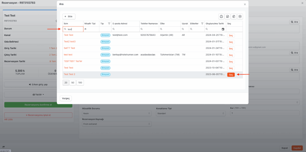 Rezervasyon Ekranında Ana Kontak Nasıl Değiştirilir