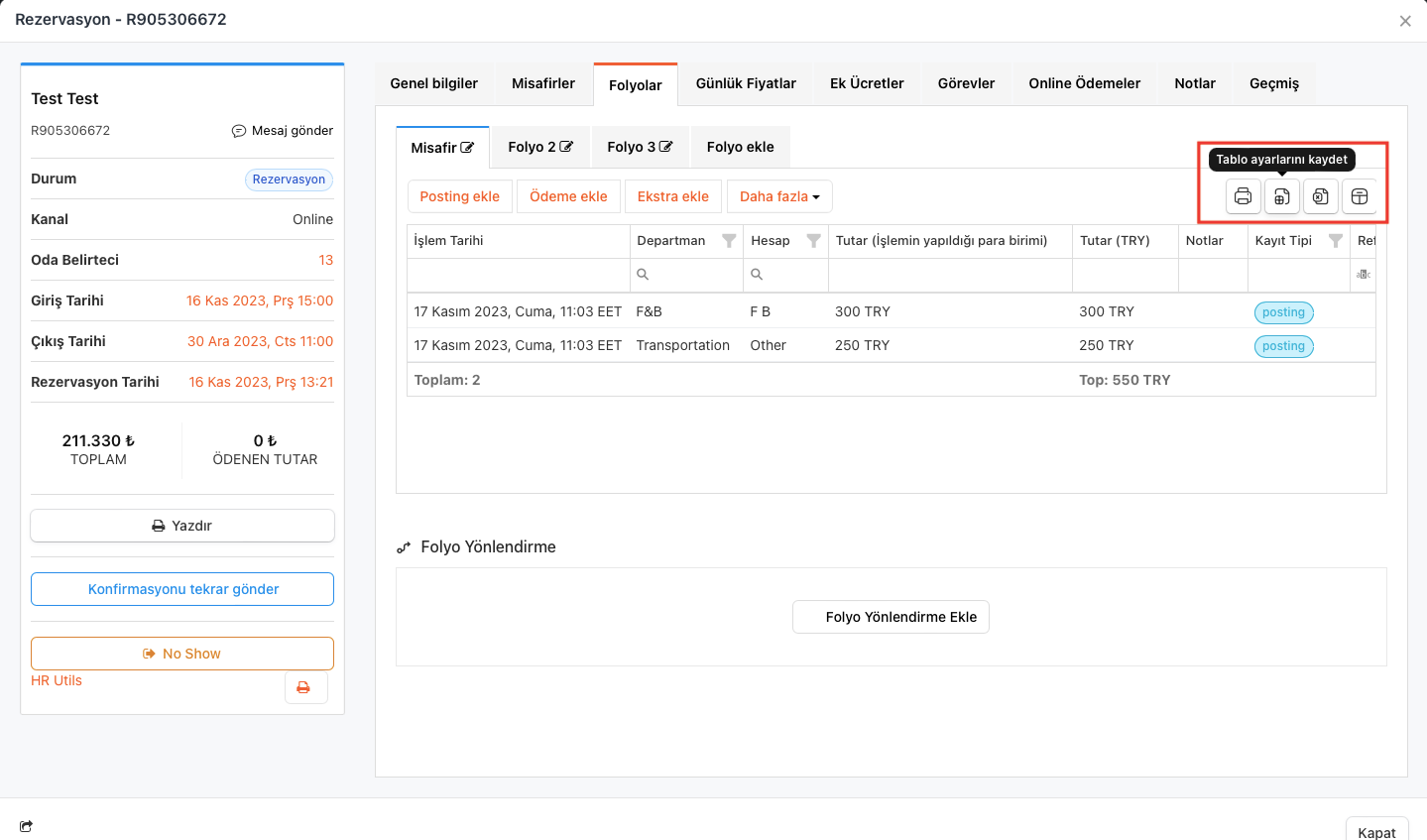 Rezervasyon ekranı folyolar sekmesi nasıl yönetilir
