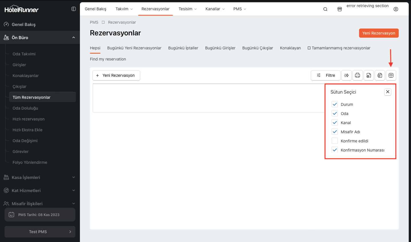 - Üst menüde yer alan Rezervasyonlar sayfasına tıklayın.